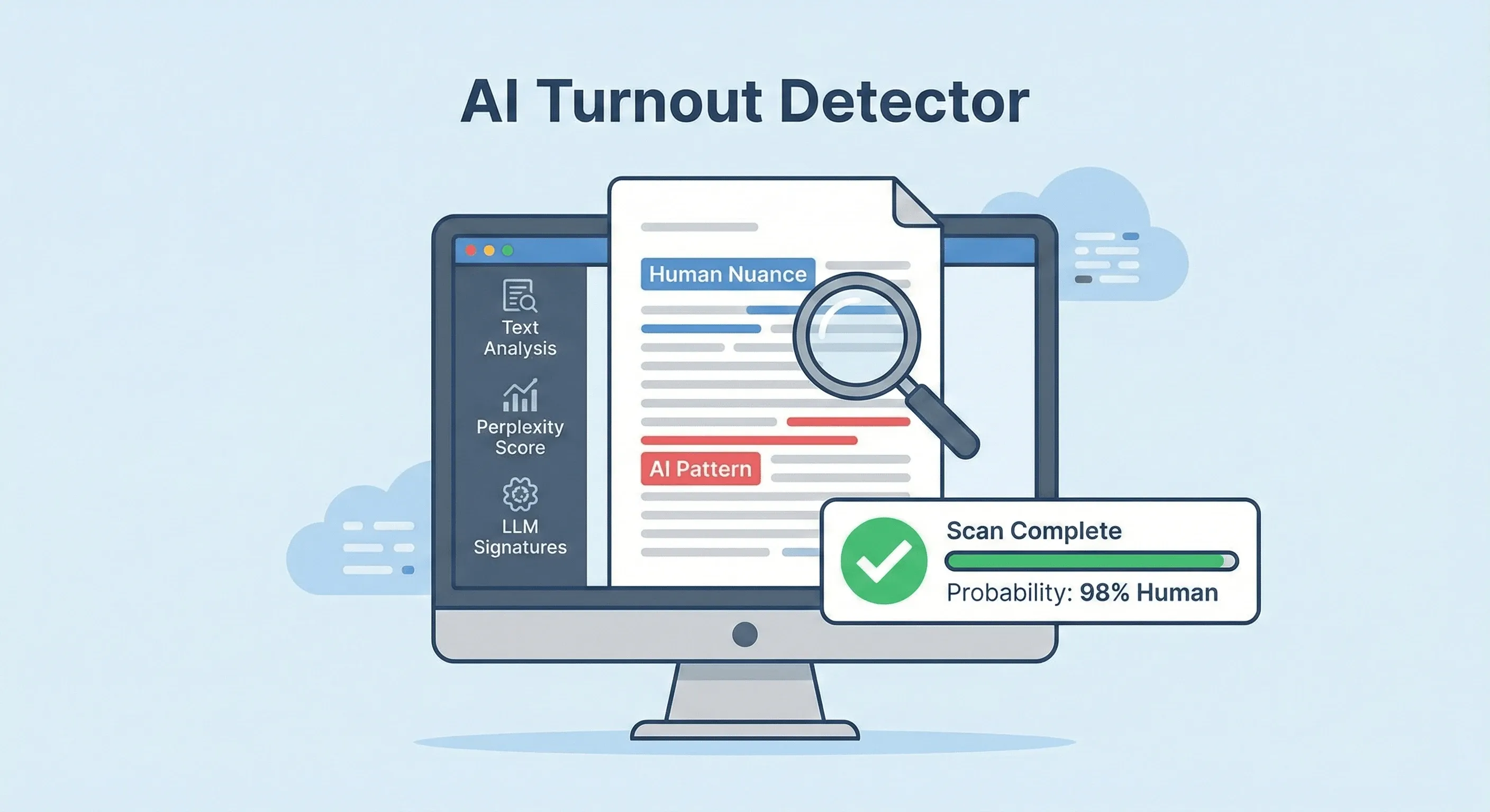 Interpreting the results of an AI detector is key to using it effectively. Our tool provides a probability score that indicates the likelihood that a piece of text was generated by AI. Understanding what this score means will help you make better decisions about your content and avoid misinterpretations.